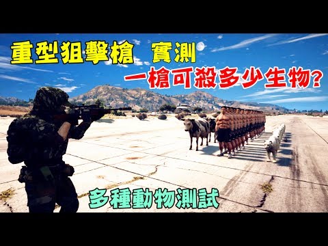 今天為各位測試,使用重型狙擊槍 一發子彈 面對各式各樣的NPC,一槍可以解決多少動物呢? 今天就來看看 同樣是一發子彈,各式虛擬NPC的抗力有沒有這麼強呢? 希望給我您小小的鼓勵訂 閱:https...